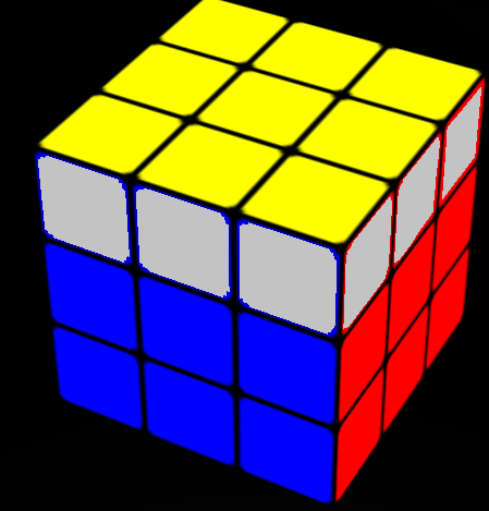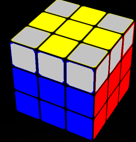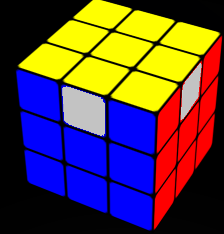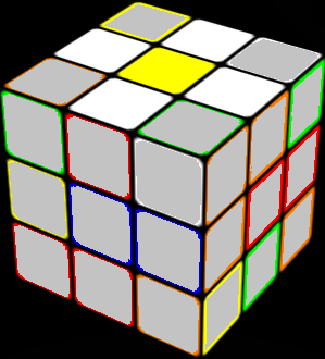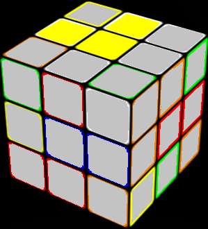 If possible, rotate the Cube so that the yellow faces on the Up-side form a right-angle in the upper left corner (like clock hands indicating nine o'clock.) [It doesn't matter what other yellow faces may be on the Up-side, as long as three of them can form this pattern.]