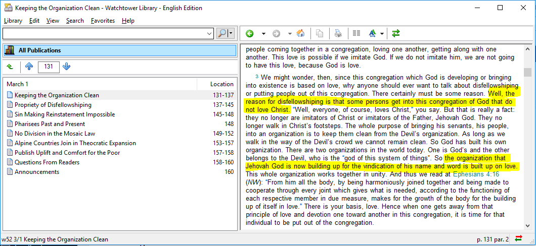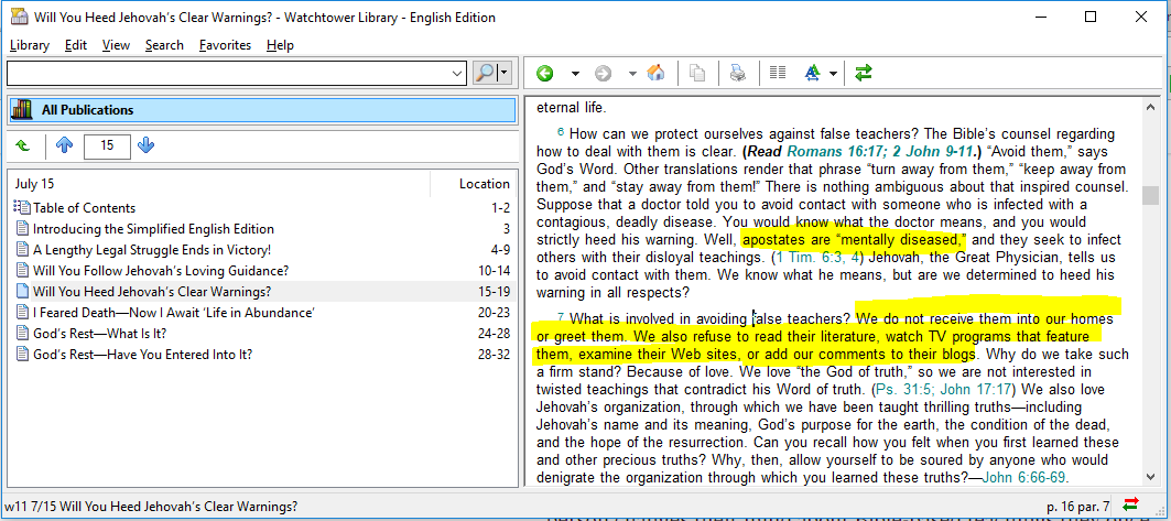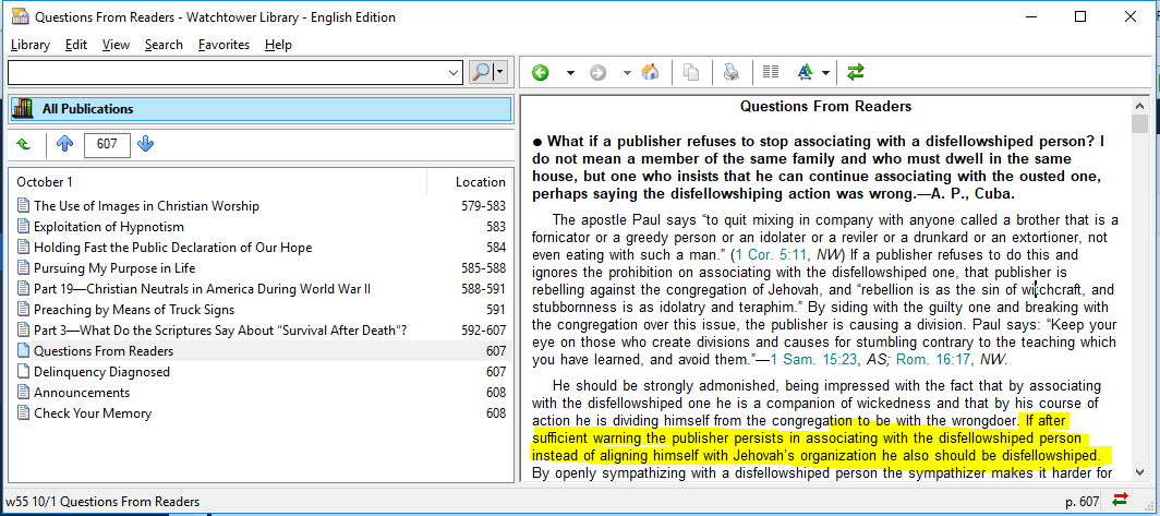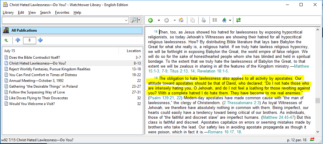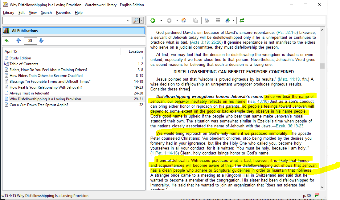 But most Witnesses are unaware of what’s in that secret book. All they hear at the conventions is: “Show love to your disfellowshipped family members by cutting off all contact with them!”