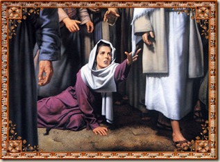 Mt:15:22: And, behold, a woman of Canaan came out of the same coasts, and cried unto him, saying, Have mercy on me, O Lord, thou Son of David; my daughter is grievously vexed with a devil. Mt:15:23: But he answered her not a word. And his disciples came and besought him, saying, Send her away; for she crieth after us. Mt:15:24: But he answered and said, I am not sent but unto the lost sheep of the house of Israel. Mt:15:25: Then came she and worshipped him, saying, Lord, help me. Mt:15:26: But he answered and said, It is not meet to take the children's bread, and to cast it to dogs. Mt:15:27: And she said, Truth, Lord: yet the dogs eat of the crumbs which fall from their masters' table. Mt:15:28: Then Jesus answered and said unto her, O woman, great is thy faith: be it unto thee even as thou wilt. And her daughter was made whole from that very hour.