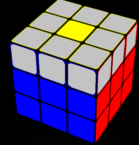 If possible, rotate the Cube so that the yellow faces on the Up-side form a right-angle in the upper left corner (like clock hands indicating nine o'clock.) [It doesn't matter what other yellow faces may be on the Up-side, as long as three of them can form this pattern.]