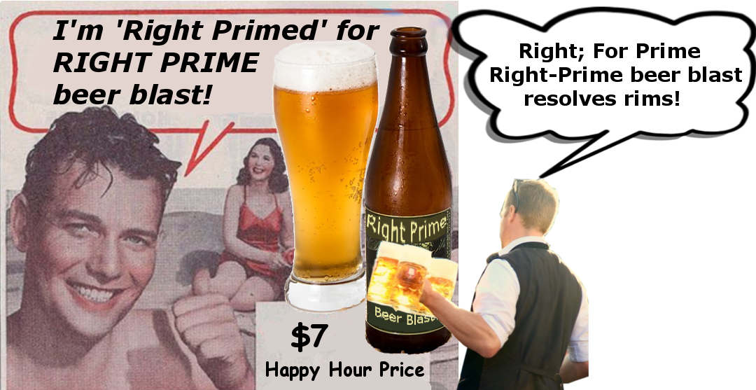 You head to the back room of the bar; the best players are in the back. The bartender, after turning on the lights, stands before the old wall-sized ad for Right Prime beer, and ritualistically recites his nightly reply to it prior to offering you a seven dollar bottle:
